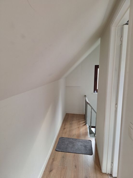 À l'étage, vous trouverez une confortable chambre ainsi qu'une salle de douche moderne.