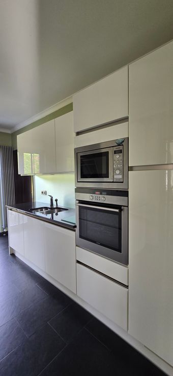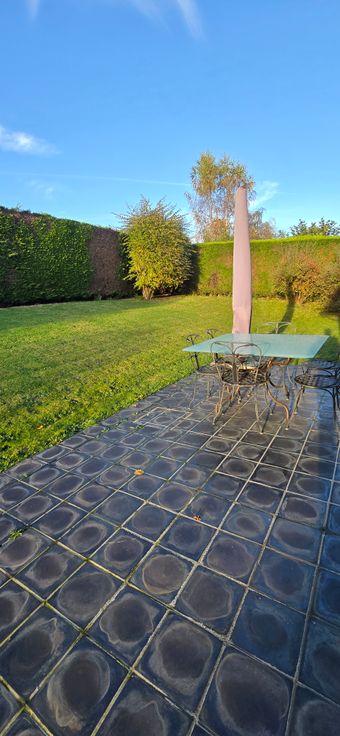Elle se compose d'un agréable séjour (45 m²), lumineux et équipé d'un insert à bois. La cuisine (11 m²) est entièrement équipée ( four, four MO, grill, hotte et taques, lave-vaisselle, frigo et donnant accès tous deux à une belle terrasse carrelée.