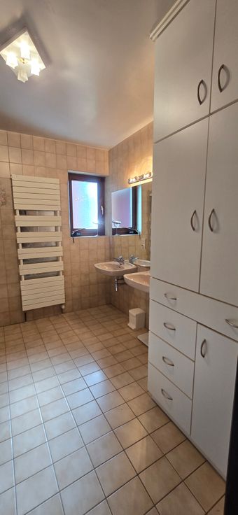 Présence d'un hall spacieux (10 m²), d'une salle de bain ( baignoire, douche, double vasque et placards sur une surface de 8 m²), W-C séparé, 2 chambres (18 et 13 m²) - possibilité d'en aménager plusieurs dans le grenier (104 m²).