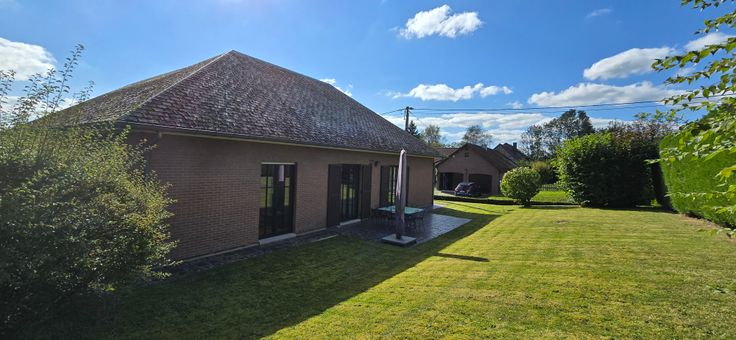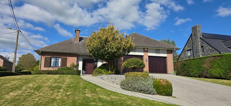 Charmante villa de plain pied, 4 façades sur un jardin arboré de ± 800 m², située dans un quartier calme, proche de toutes commodités (écoles, commerces, transports en commun, ...)