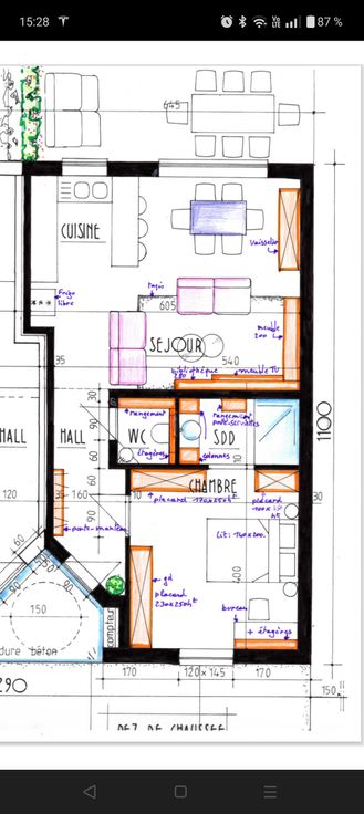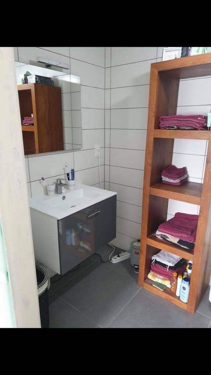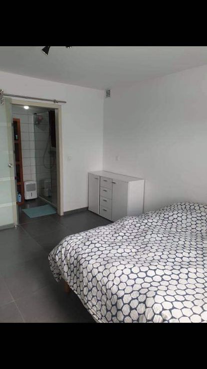 Composé d'un hall d'entrée, d'une chambre, une salle de bain avec douche à l'italienne, d'un wc séparé, d'une pièce ouverte séjour et cuisine avec four et taques à inductions, d'une terrasse et un jardin avec une cabane de jardin.