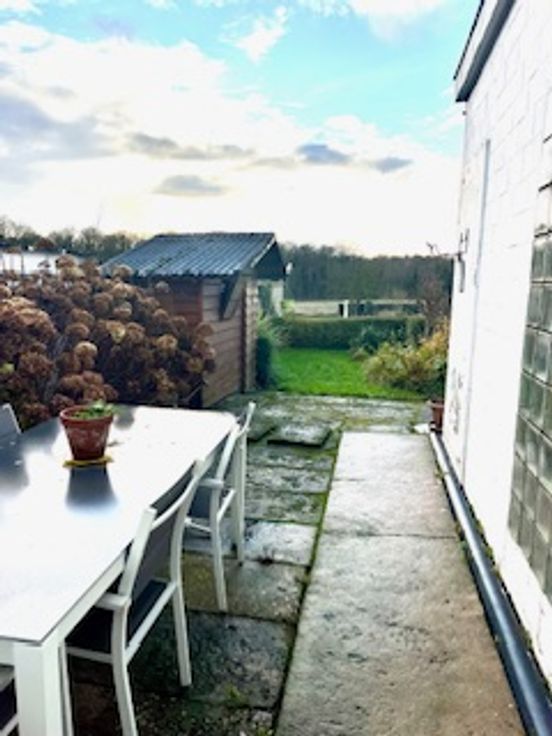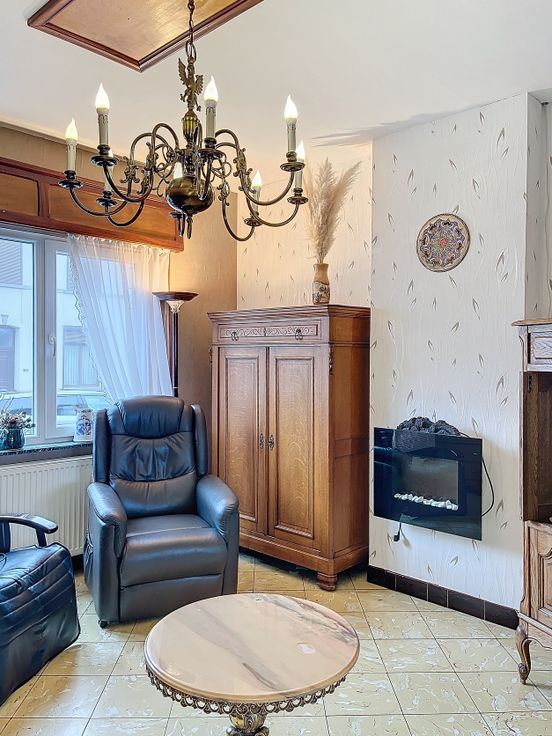Jardin et Terrasse de plein pied, plein sud avec vue complétement dégagée. Double vitrage et volets manuels (partout). Chauffage gaz (nouvelle chaudière). Caves de 35 m². Pour visite et info Tél ; 0488.92.32.02.