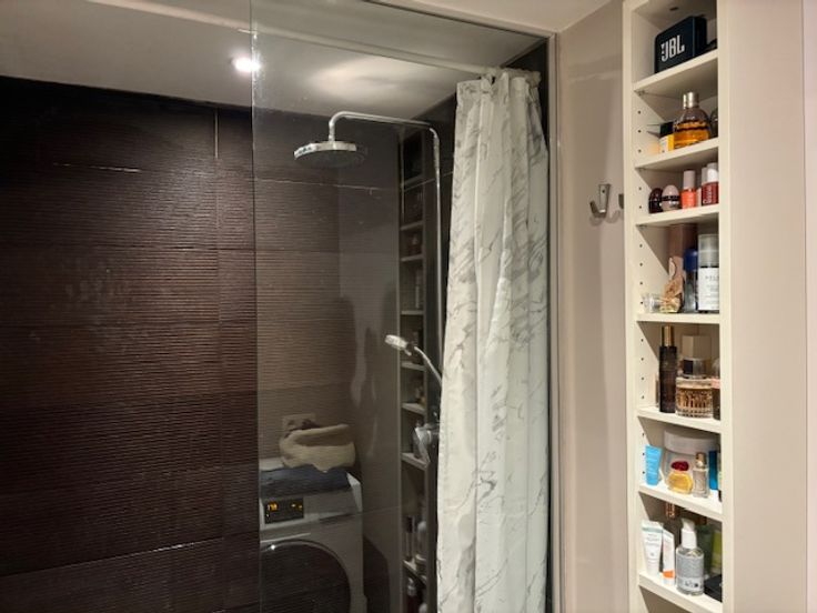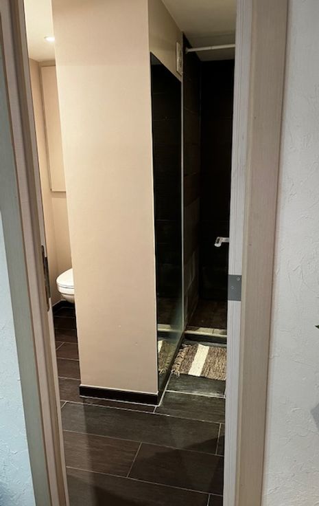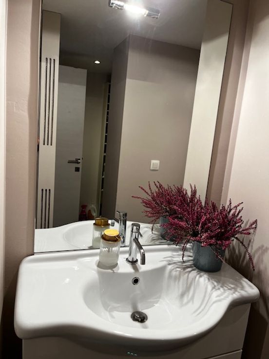 d’une salle de bain avec douche à l’italienne, raccordement pour machine à laver, double VMC et d’un wc semi séparé