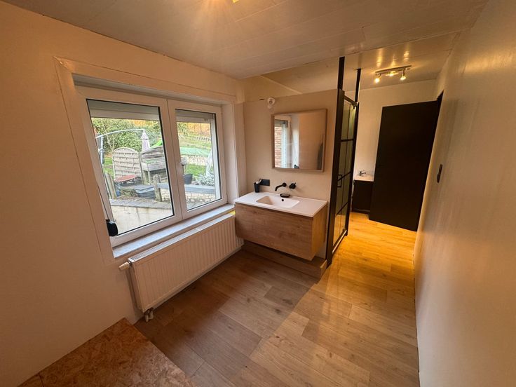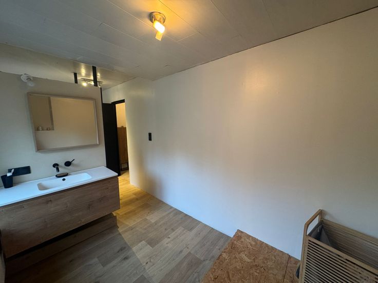 La salle de bain est dotée d’une douche à l’italienne et d’un espace aménagé pour l’installation d’une baignoire, offrant ainsi confort et praticité.