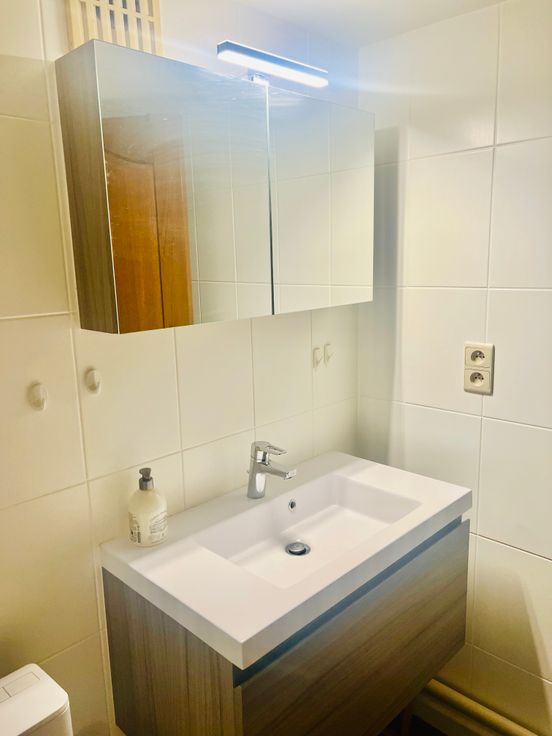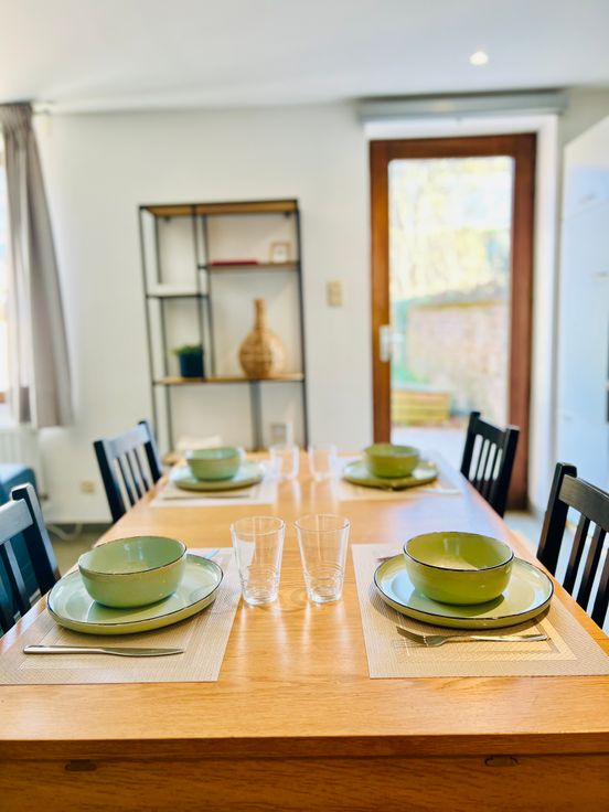 L'appartement est composé d'un salon, cuisine équipée, coin salle à manger, coin bureau, chambre avec grand dressing, salle de bain avec baignoire ainsi qu'un grand jardin privatif clôturé avec terrasse et robot tondeuse avec un emplacement pour un lave linge et un séchoir. Tout l'appartement est meublé comme sur les photos. Charges : 150 € pour provision eau, provision gaz, assurance. Electricité : compteur individuel, abonnement à prendre par le locataire. Pas de charges communes. (A discuter : éventuelle possibilité de mettre à disposition un lave linge "Miele" et un séchoir pour 45 € par mois).