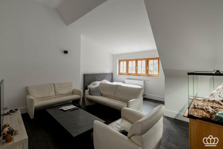 Dit pand wordt op internet verkocht van 12/02/2025 tot 20/02/2025. Met o.a. imposante grote open leefruimte, bureel, 5-6 slaapkamers, 4-5 badkamers, aparte studio en geheel onderkelderd op een bosrijk perceel van ca. 1,9 hectare. Indeling: - Gelijkvloers: inkomhal met gastentoilet en vestiairekast links een ruim bureau met kitchenette en toilet, en een aparte ingang. Dubbele deuren naar de imposante en lichte leefruimte van 250m² met grote “vide” en plafonds van ruim 6 meter hoog met grote raampartijen en voorzien van 2 prachtige lusters, een gezellige zithoek met open-haard en een open keuken voorzien van alle hedendaagse inbouwtoestellen, aansluitend nog een praktische berging/ bijkeuken. - 1e verdieping: via een trap in de inkomhal toega hal in de vorm van een passerelle die uitkijkt over de living. Masterbedroom met eigen ensuite badkamer en dressing. Verder nog 2 grote slaapkamers met elk een eigen badkamer en dressing. Daarnaast bevindt zich hier nog een praktische berging / strijkkamer. - 2e verdieping: op deze verdieping bevindt zich een royale studio die zich perfect leent voor inwonend personeel, deze verdieping omvat een leefruimte met ingerichte keuken, berging en badkamer. Verder op deze verdieping nog 1 ruime slaapkamer met badkamer en nog een slaap/ hobbykamer.. - Kelder: via de inkomhal toegang tot een grote (droge) kelder die zich onder de gehele woning uitstrekt, momenteel in gebruik als fitness ruimte en opslag, de kelder beschikt over een eigen ingang. - T