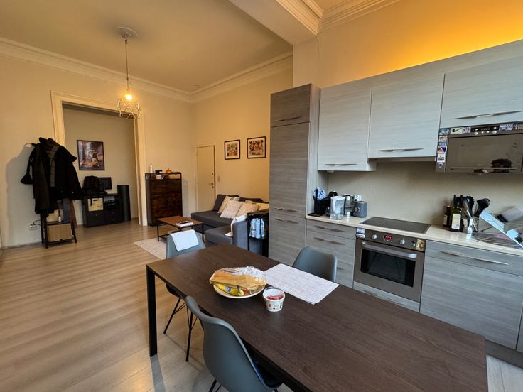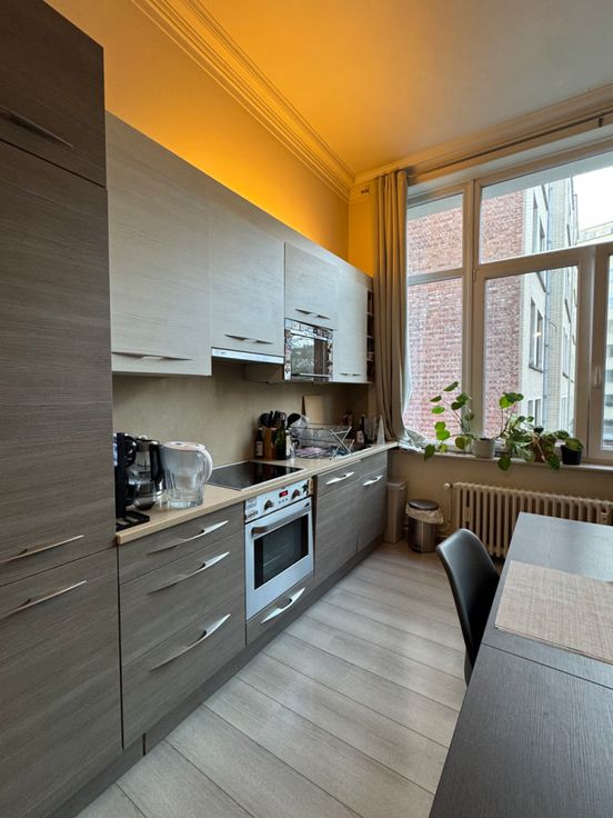 : Kosten, Huur contract, Maandelijksehuurinkomsten: 755 € . : Tennis, Tram: m, Supermarkt, Metro: m, School: m, Kinderdagverblijf, Winkel, Sporthal, Bioscoop, Winkelcentrum: m, Bus: m . : Verf . : Vinyl, Zwevende vloer . : Dubbel glas, PVC, Hout . : Schoorsteen . : Vuur alarm, Telefoon kabel, Intercom, Kabel TV . : EPC certificaat nb., CO² uitstoot: 77 Kg Co2m²an, Energie dienst: 297 kwh . : Keramische glazen tafel, Keuken meubels, Afwasmachine, Kap, Koelkast, Magnetron, Oven, Diepvries . : Wasruimte, Stookruimte, Kelder . : Slaapkamer: 15 m², Badkamer, Wasruimte: 7 m², Nacht hal: 3 m², Keuken: m², Woonkamer: 30 m², Toilet . : Stookruimte, Kelder