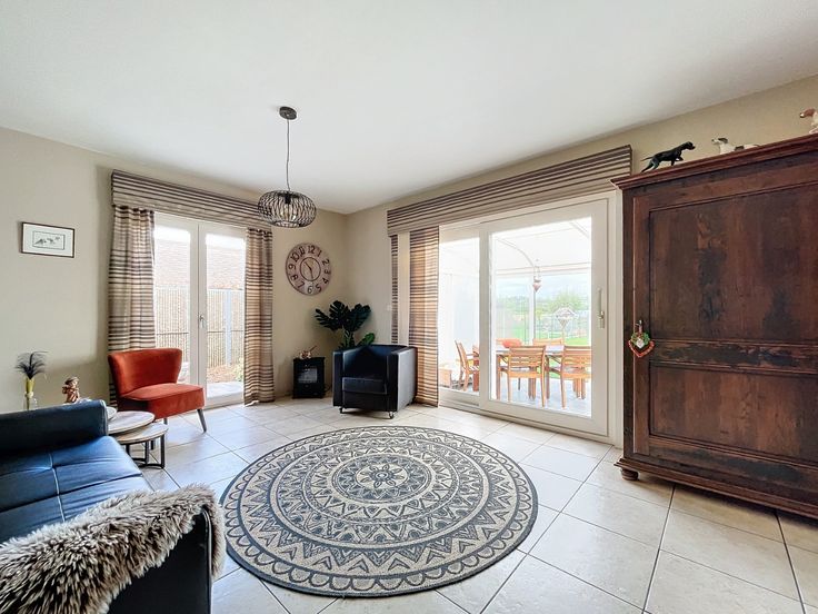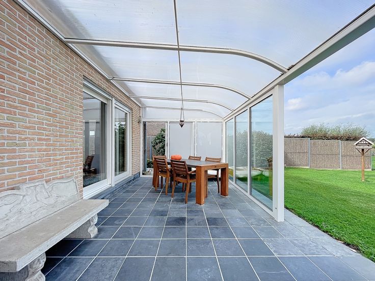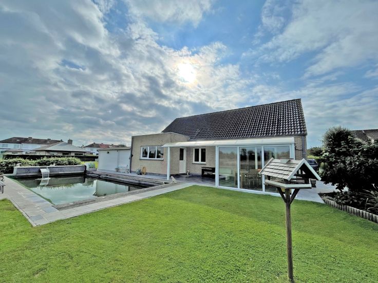 Uiterst rustig gelegen woning met prachtig zicht op beschermd landbouwgebied. Ideaal voor de liefhebbers van rust en natuur. De woning zelf bestaat uit: inkomhal met toilet, living met eetkamer, ingerichte keuken, ruime berging, garage, slaapkamer en badkamer (GLV). Verdiep: twee slaapkamers. Prachtige tuin met meerdere terrassen (deels overdekt) en zwemvijver. De eigenaar wenst de woning nog 15 maanden huren à 1.000 euro per maand. Ref. D-62