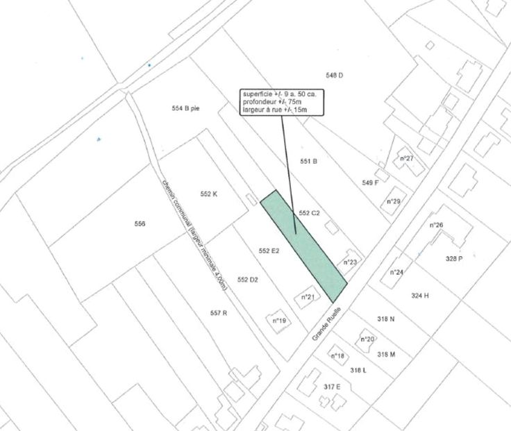 Situé dans le charmant village de Warêt-la-chaussée, au sein d'un agréable quartier, beau terrain de +/- 9 ares en zone d'habitat à caractère rural sur 50m et en zone agricole pour le surplus.
