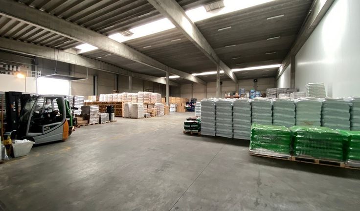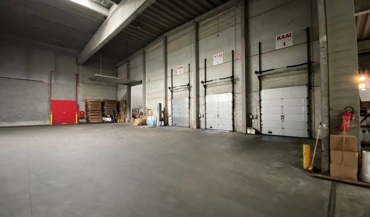 2500m² magazijn met 500m² laadsas, 350m² overdekte luifel en 120m² kantoor en 6 parkeerplaatsen