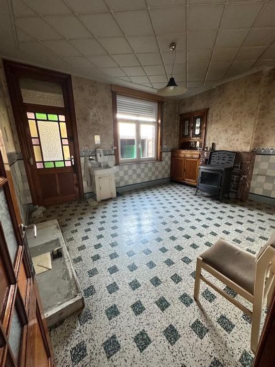 Maison trois façades avec passage latéral à rénover se composant de deux pièces principale au rez-de-chaussée, terrasse, annexe, jardin, passage latéral et une cave. A l'étage, deux chambres et grenier aménageable. Pas de cuisine ni de salle de bains. Simple vitrage en bois avec volets. Possibilité d'acheter un garage non attenant à l'habitation vendue pour un prix à partir de 10.000€.