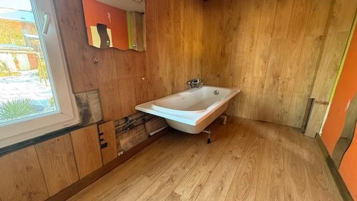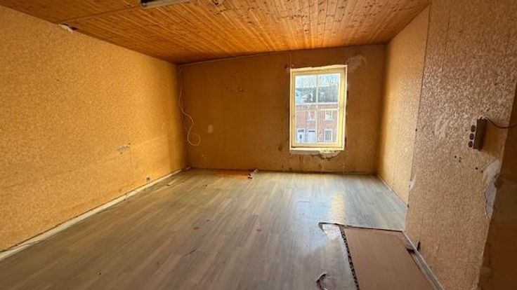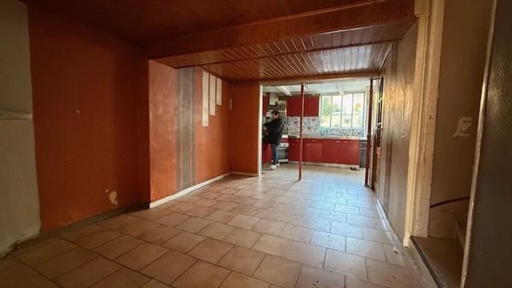Maison avec jardin à rénover composée au RDC : salon - sàm - cuisine - wc - cour - jardin - remise - ETAGE ;une chambre - SDB (boiler électrique) - GRENIER : aménageable (+ trappe)