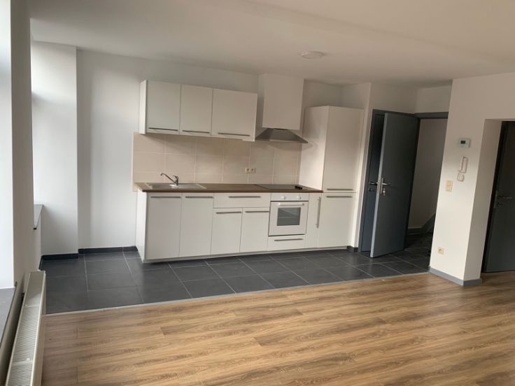 Duplex se situant au 1er et 2eme étage, comprenant un salon avec une cuisine américaine équipé, salle de bain et 1 chambre à coucher au premier étage; 2 autres chambres à coucher et 1 salle de bain au 2eme étage. 1 piece dans la cave de 16m2. Duplex fraichement renové, calme et lumineux, pres de toutes les commodités. Petits animaux de compagnie admis. Compteur electrique bihoraire, gaz et eau individuels. Charges communes: entretien et lumiere des communs plus assurance incendie 50€. Convient pour une colocation de 3 personnes à raison de 400€ par personne sans les charges.