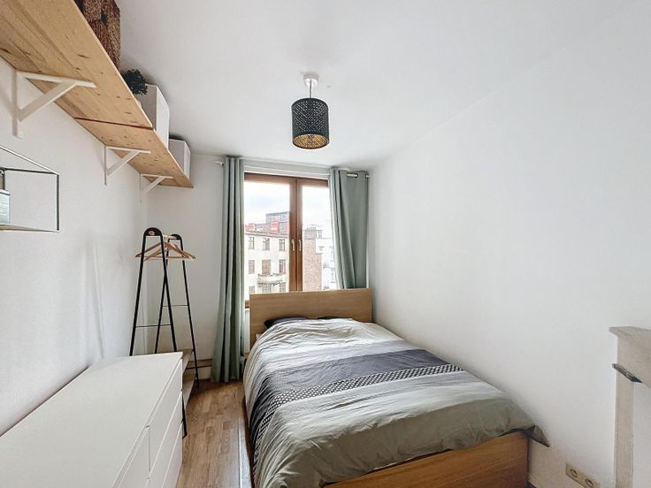 Wonen on the top, vlakbij het internationale station Gare du Midi! Dit charmante appartement met één slaapkamer, gelegen op de 5e en bovenste verdieping van een prachtig gebouw uit de jaren 30, biedt alles wat u nodig heeft. Met een woonoppervlakte van 61 m² beschikt het over een slaapkamer, een kantoor, een lichte woon- en eetkamer, een aparte keuken en een badkamer met ligbad, wastafel, toilet, elektrische verwarming en aansluiting voor een wasmachine. Het hoogtepunt is het 26 m² grote terras op het westen, perfect om te genieten van zonsondergangen.