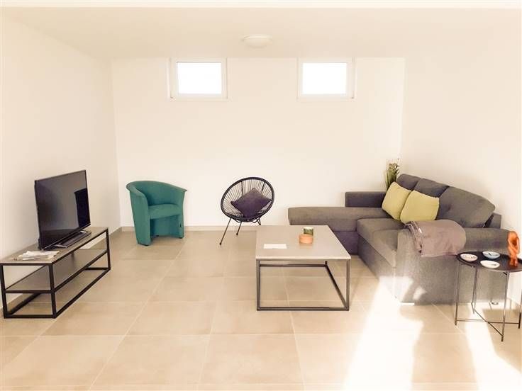 Luxe appartement volledig gemeubileerd, gelegen in een rustige omgeving dicht bij de belangrijkste wegen (op 5 min. van de A8) en dicht bij alle voorzieningen die het dorp van Anvaing te bieden heeft (winkels, apotheek, openbaar vervoer, scholen, enz.). In deze luchtige en homogene omgeving biedt dit op het zuiden gelegen appartement met 2 slaapkamers modern comfort terwijl u geniet van een prachtig uitzicht op het omliggende platteland. Uitrusting: carport, kelder, regenwatertank, gecontroleerde mechanische ventilatie, verlichting, behang en rolluiken, volledig geschilderd. Huurprijs: 905 € + 65 € gemeenschappelijke kosten.