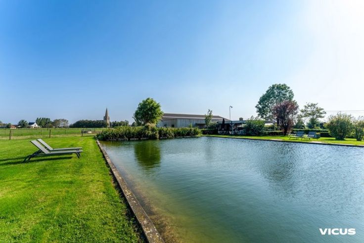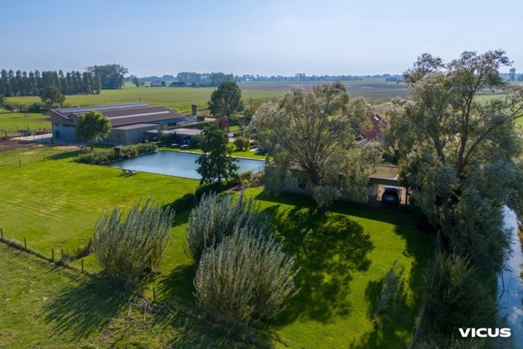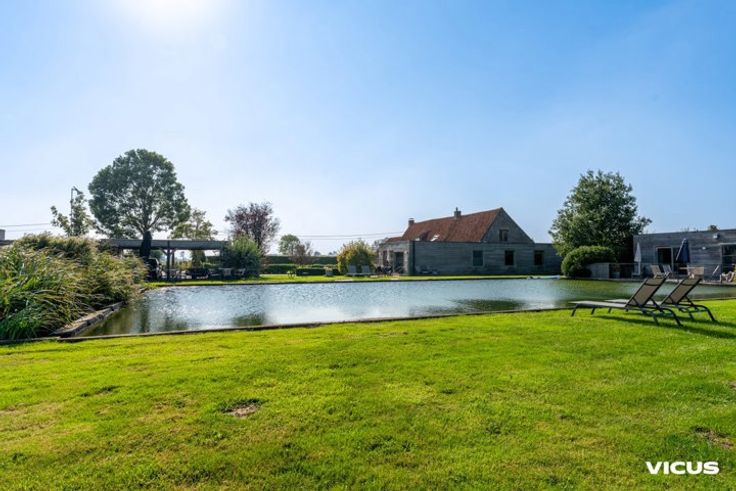 Deze instapklare gezinswoning is gelegen in het landelijke Alveringem, op zo'n 20 minuten rijden van de kust. Het domein beschikt over bijna 3,5 hectare grond en biedt niet alleen een ruime woning maar ook twee vakantiehuizen, een stalgebouw en een hoevewinkel. Op zoek naar ruimte of wenst u graag een combinatie van verschillende agrarische activiteiten uit te baten? Dan is dit uw kans! De gezinswoning zelf straalt comfort en luxe uit. De open leefruimte met moderne keuken, eetplaats, salon en een gezellige zithoek met bar staat in directe verbinding met de ruime, zonovergoten tuin. Op het gelijkvloers vind je ook een stijlvolle badkamer, een bureauruimte en een praktische wasruimte. Op de bovenverdieping zijn er vier ruime slaapkamers die rust en privacy bieden. De vakantiehuizen 't Wydouw (6 personen) en 't Klein Wydouw (4 personen) zijn bereikbaar via een aparte oprijlaan, wat de privacy van de gezinswoning waarborgt. Beide vakantiehuizen zijn volledig uitgerust en beschikken elk over een eigen zonnig terras met adembenemend uitzicht op het omliggende landschap en de vijver (die tevens dient als waterreservoir voor de stalling). Deze vakantiehuizen bieden niet alleen comfort maar ook een aantrekkelijk verhuurrendement. Er zijn voldoende parkeerplaatsen op het domein voor zowel bewoners als gasten. Meer informatie of het inplannen van een bezoek? Neem snel contact op met Laura via 0470 55 30 30 of via laura.persyn@vicusvastgoed.be