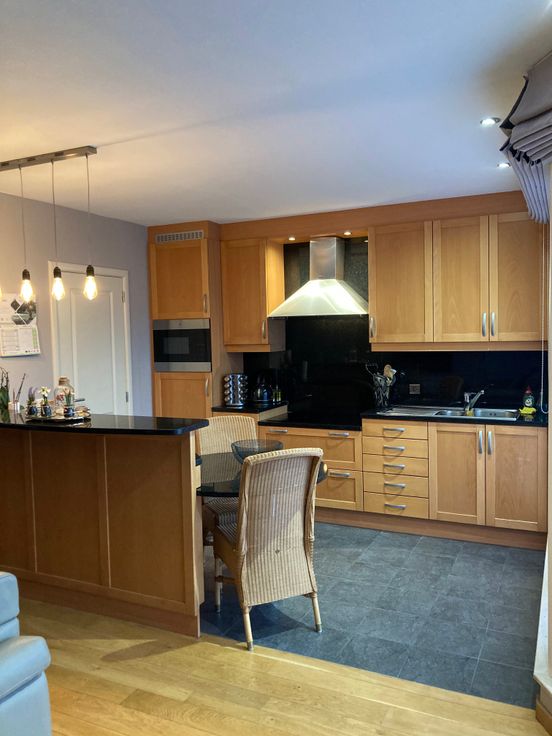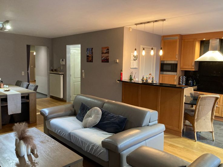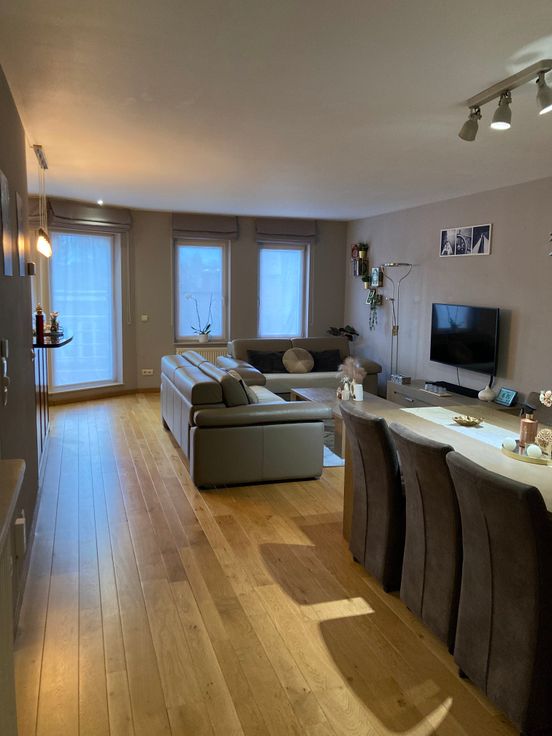 Ruim instapklaar 2-slaapkamerappartement met lift, 2 terrassen en inpandige garage in het centrum van Turnhout. In de hal bevindt zich het gastentoilet met handwasser. De woonkamer is ruim (42m²) met veel lichtinval en een mooie Frans Eiken parket. Aansluitend is er een open keuken uitgerust met koelkast, combi oven en inductie kookplaat met dampkap. Het granieten werkblad/keukentafel geeft een mooie uitstraling en is zeer onderhoudsvriendelijk. De keuken heeft eveneens een handige berging met schabben en ruimte voor extra toestellen. Het dubbele raam in de keuken geeft toegang tot het Bankirai terras aan de voorzijde.