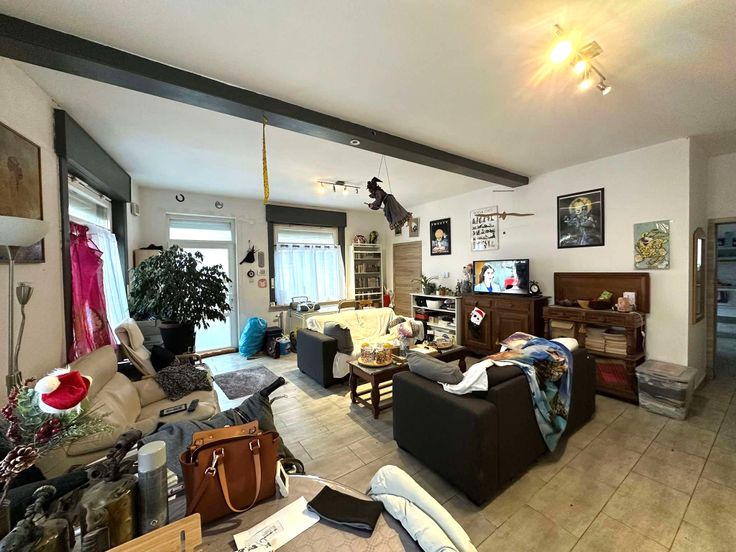 WONING MET GARAGE, ATELIER EN TUIN GELEGEN TE DEUX ACREN (LESSINES). NABIJ OPENBAAR VERVOER, WINKELS, SCHOLEN,… TOTAAL OPPERVLAKTE PERCEEL 4A 55CA. INDELING: Ruime lichtrijke salon en eetkamer, volledig uitgeruste keuken, afzonderlijk toilet, kelder, terras, garage en aangrenzende werkplaats. Evenals nachthal, 3 ruime slaapkamers, doucheruimte met toilet. TECHNISCH: dubbele beglazing PVC, aangesloten op riolering, verwarmingsketel op aardgas, elektrische rolluiken aan de straatzijde, stadswater en regenwater,… VOOR MEER INFO EN/OF BEZOEK BEL 0478/16 71 00