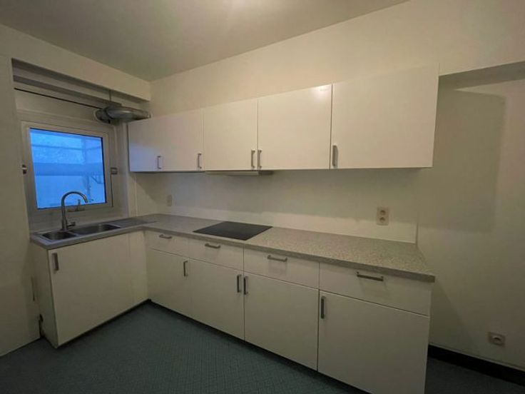 Indeling: inkomhal met ingemaakte vestiairekast; woonkamer op parket (wordt opnieuw opgefrist) met grote raampartijen; keuken voorzien van kookplaat en enkele spoelbak (keukenkastjes worden nog vernieuwd); apart toilet; betegelde badkamer bevat inloopdouche en lavabo; 3 slaapkamers.