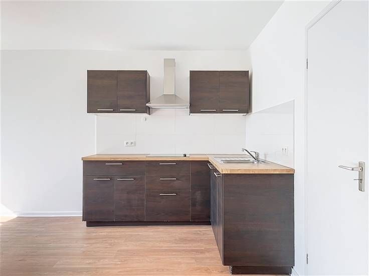 Wijk Brugmann Ziekenhuis - Gerenoveerd studio-appartement +/-50m² met terras. Het is als volgt samengesteld: een inkomhal, een woonkamer +/-32m², een slaap/kantoorruimte +/-6m², een badkamer, een apart toilet en een terras +/-6m² op het westen. - Inrichting: kelder, intercom, dubbele beglazing in aluminium, centrale verwarming op gas, PEB : F, Vrij te huur.