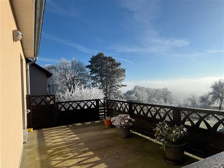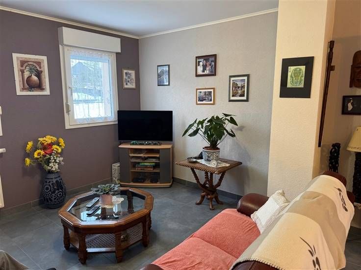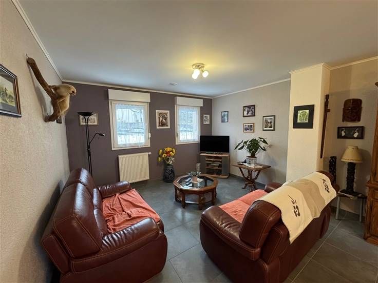 Sorry er is geen nederlandse vertaling beschikbaar. Belle maison 4 façades dans une voie sans issue et jouissant d’une belle vue dégagée . Maison de plain pied comprenant hall , séjour , cuisine équipée ouverte , terrasse surplombant un petit jardin , 2 chambres à coucher , salle de bains, wc séparé . Au sous-sol, grand garage, buanderie , atelier et chaufferie .
