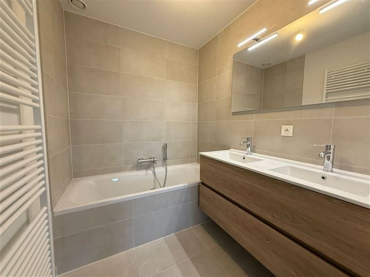 1ère occupation !!! UCCLE (Fort Jaco), dans une nouvelle construction, à proximité immédiate des commerces, des restaurants, du David Lloyd et de la forêt de Soignes, sublime appartement de 73m² + terrasse de 7,5m², comprenant: hall d'entrée, wc séparé, living, cuisine full équipée, 1 chambre, salle de bain, espace buanderie, porte blindée, cave privative. Parking auto en option (130€/mois), parking moto en option (65€/mois) et local vélos. L'appartement est équipé de rails, luminaires dans certaines pièces. Libre directement. BAIL SOCIETE OK! Pour conditions et visites: 02 344 88 84 / rent@tribel-immo.be / www.tribel-immo.be (PEB: B)