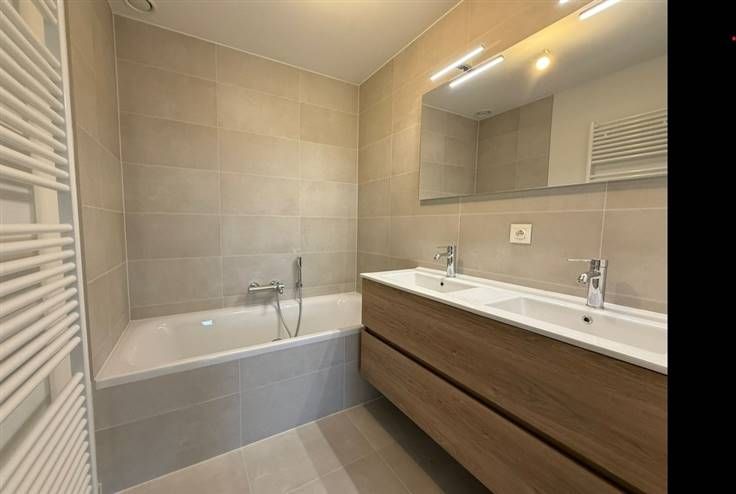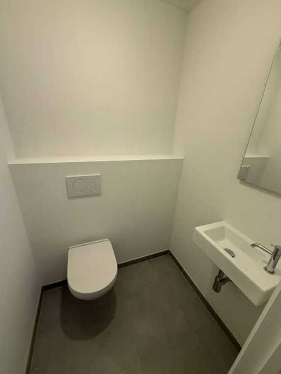 1ère occupation !!! UCCLE (Fort Jaco), dans une nouvelle construction, à proximité immédiate des commerces, des restaurants, du David Lloyd et de la forêt de Soignes, sublime appartement de 73m² + terrasse de 7,5m², comprenant: hall d'entrée, wc séparé, living, cuisine full équipée, 1 chambre, salle de bain, espace buanderie, porte blindée, cave privative. Parking auto en option (130€/mois), parking moto en option (65€/mois) et local vélos. L'appartement est équipé de rails, luminaires dans certaines pièces. Libre directement. BAIL SOCIETE OK! Pour conditions et visites: 02 344 88 84 / rent@tribel-immo.be / www.tribel-immo.be (PEB: B)