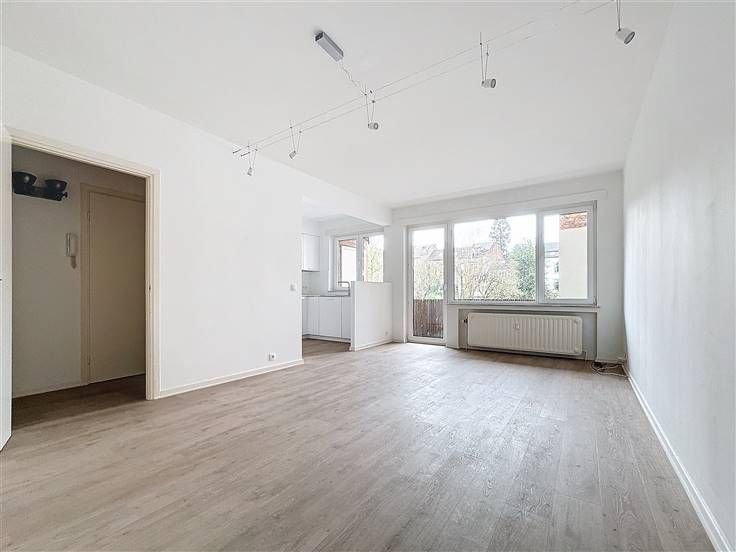 Sorry er is geen nederlandse vertaling beschikbaar. Bel appartement LUMINEUX au 1er étage +/- 60 m² REMIS A NEUF situé à l'arrière d' un petit immeuble Beau living +/- 22 m² parquet cuisine américaine super équipée une chambre +/- 12 m² salle de douches wc emplacement pour machine à laver TERRASSE +/- 6 m x 2 m Charges : +/- 200 euro/mois parking dans l'immeuble (100 euro) LIBRE