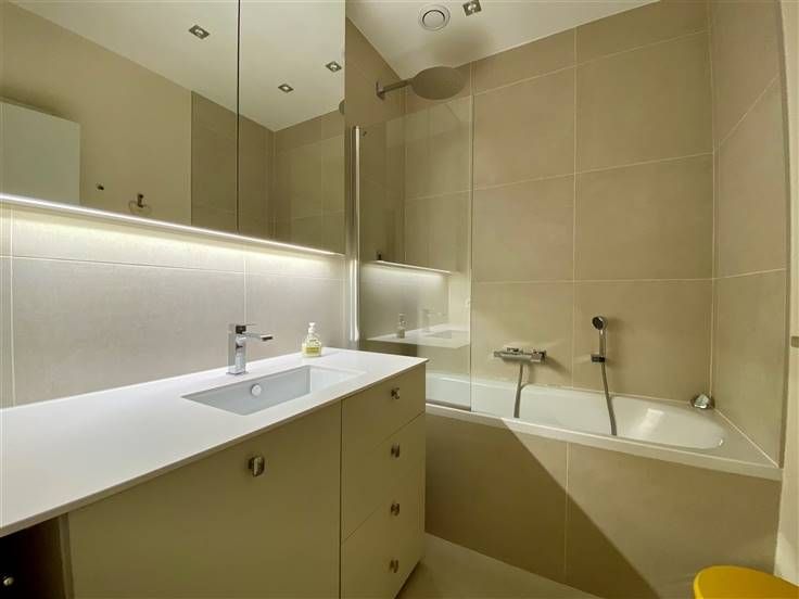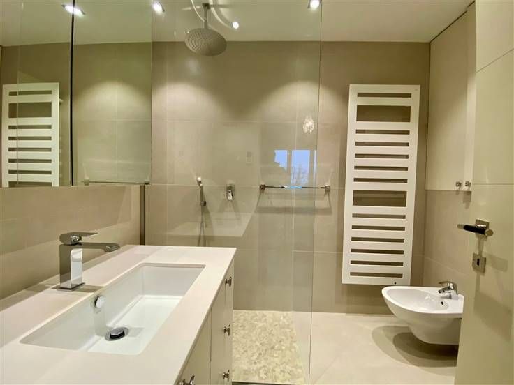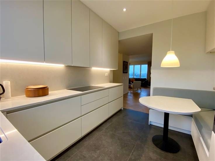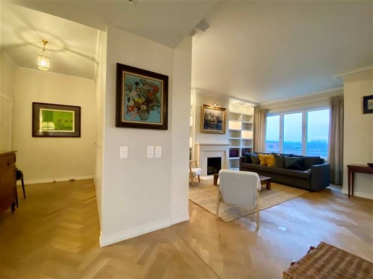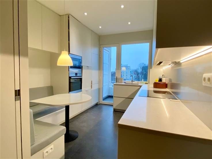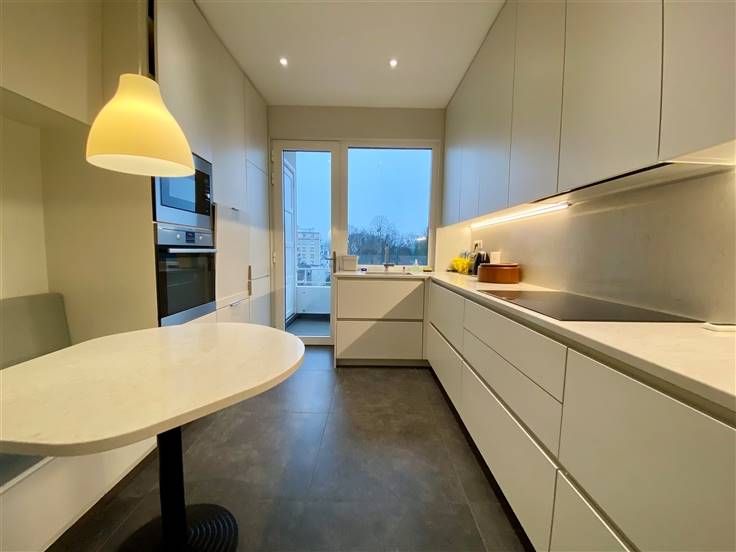 Beschrijving: Ontdek dit elegante appartement gelegen in Ukkel, dichtbij Churchill en Vanderkinderestraat, met een bewoonbare oppervlakte van 140 m². Gelegen op de zesde verdieping geeft dit appartement u vrij zicht op de omgeving. Het appartement is volledig gerenoveerd door in alle kamers op maat gemaakte kasten toe te voegen. Een echt luxe pand met al het gewenste confort. Bestaande uit: Grote inkomhal met vestiaire en gastentoilet. Woon- en eetkamer aan de voorzijde van +/- 40m2, met op maat gemaakte bibliotheek en toegang tot een eerste terras van 8m2 gelegen op het westen. Halfopen keuken van 11m2, volledig ingericht met ontbijthoek. Tevens toegang tot een achterterras en toegang tot de dienstlift. Nachthal. Eerste slaapkamer van 16m2 met aangrenzende doucheruimte met bidet en toilet. 2 overige slaapkamers aan de achterzijde van 16 en 12m2 met toegang tot een derde terras. Badkamer met ligbad en wastafel. Aparte wasruimte met wasmachine en droger. Kelder en gesloten garage inbegrepen in de huurprijs. Mis deze zeldzame kans niet om in een prestigieuze en praktische omgeving te wonen, waar aan elk detail is gedacht om uw levenskwaliteit te verbeteren.