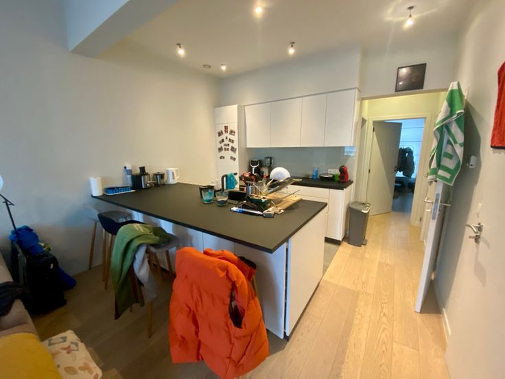 In het centrum van Brussel, op de 2e verdieping van een klein gebouw met twee appartementen boven winkels, aangenaam appartement met twee slaapkamers (16 & 12 m2) bestaande uit een woonkamer (28m2) met open ingerichte keuken (6m2), bijkeuken, apart toilet en doucheruimte. Dubbele beglazing. Condensatieketel op gas. Parketvloer. PEB D+ Informatie & bezichtigingen: resi@sontagimmo.be