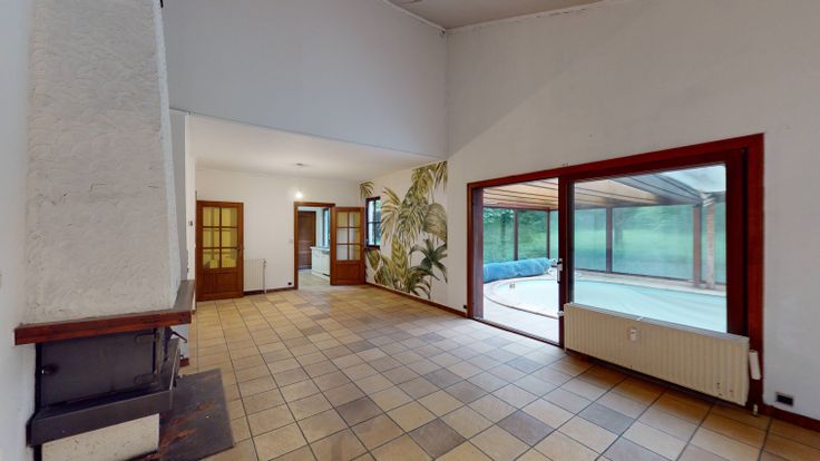 Avec une surface habitable de 300 m², cette maison à rénover présente un potentiel intéressant. Elle se compose de 4 chambres, d’un grand séjour/salle à manger, d’une salle de bain, d’une buanderie, d’une cuisine, d’un patio et d’une piscine offrant une vue dégagée sur le vaste jardin.