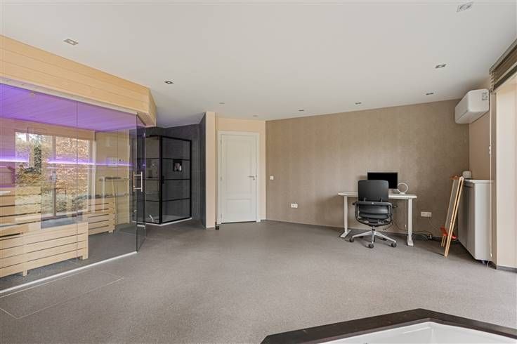 Te koop: Luxueuze Villa in een Rustige, Groene Oase Gelegen op een royaal perceel van 1.770 m² in de “place-to-be” villawijk aan de grens met NL, biedt deze tot in de puntjes gerenoveerde villa (bouwjaar 1993, totale renovatie in 2016) alles wat u zich kunt wensen voor een exclusief en comfortabel leven. Met 428 m² aan hoogwaardige woonruimte en een verfijnde afwerking, is deze woning het perfecte voorbeeld van luxe en functionaliteit. De villa beschikt over 4 à 5 slaapkamers en 2 luxe badkamers, perfect voor een gezin dat op zoek is naar ruimte, stijl en privacy. Het goed onderhouden, aangelegde tuinperceel van 1450 m² is een oase van rust, voorzien van een verwarmd zwembad, een sierlijke vijver en twee charmante tuinhuizendie het buitenleven tot een waar genot maken. Indeling: statige inkomtraphal met vestiaire en gastentoilet, indrukwekkende en lichte woonkamer van 100 m² met gashaard en een aanpalende overkapping op het zuiden, open ingerichte luxe eetkeuken met alle toestellen en zelfs een wijnkoeler en grote diepvriezer, verder een waskamer, een hobbykamer anex wellnessruimte met whirlpool en sauna (Finse + Infrarood) en een badkamerhoek met inloopdouche met wastafel, een ruime inpandige garage dewelke buiten de poort al volledig is ingericht als kamer die kan dienen als bureel, hobbykamer of extra slaapkamer. Boven: overloop, master met ensuite luxueuse badkamer ingericht met jaccuzzi, inloopdouche en dubbel wastafelmeubel met mogelijks een dir