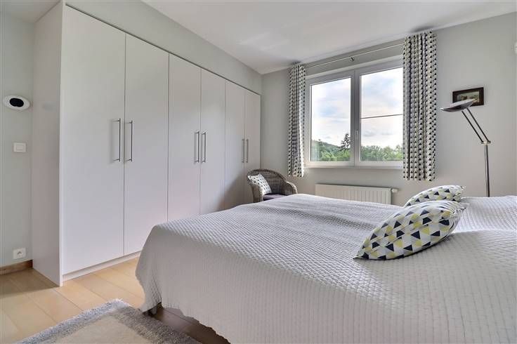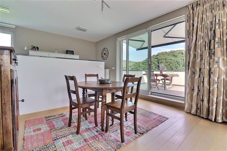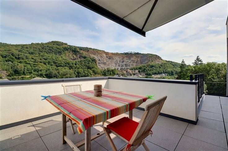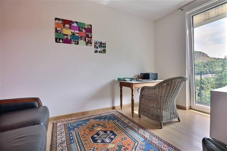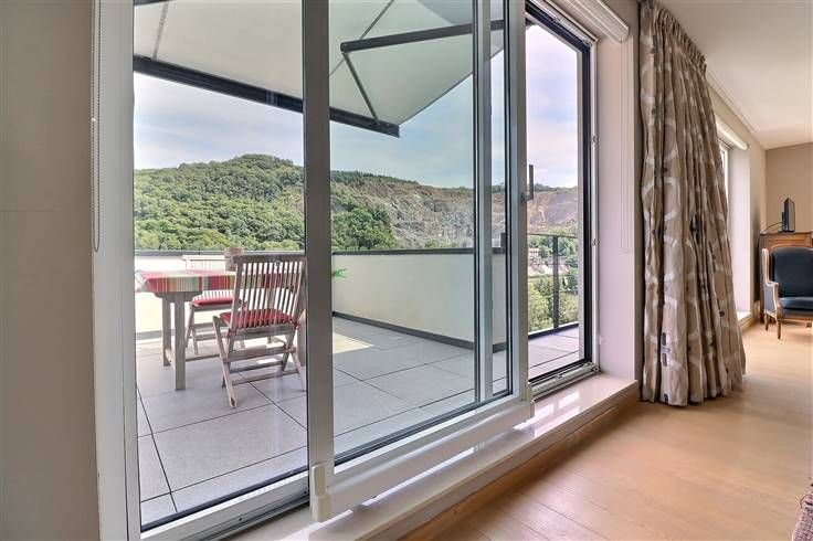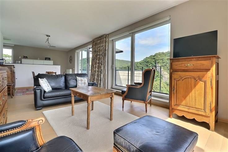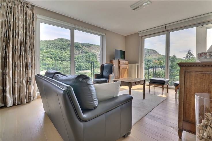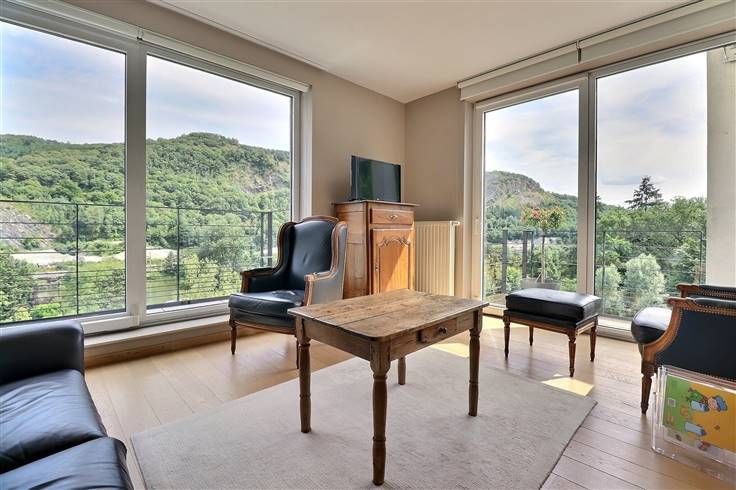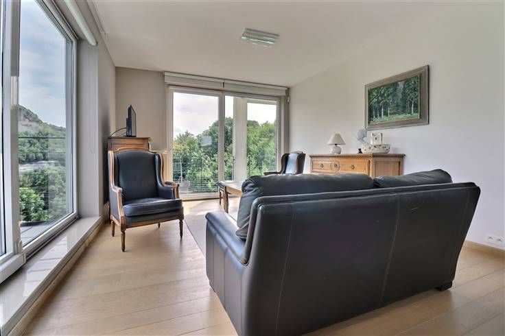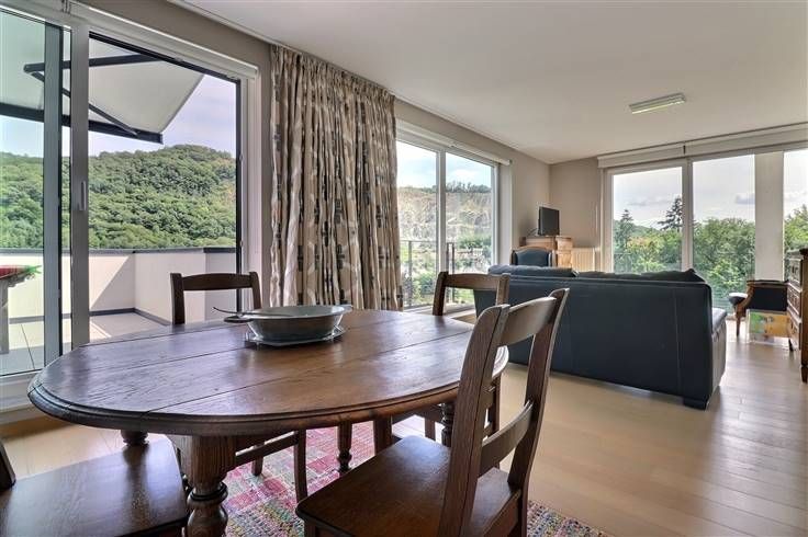 Situé à Profondeville, dans le complexe immobilier « Le Domaine des Roches », cet appartement au cinquième étage (avec ascenseur) ravira les personnes en recherche de leur cocon. Situé au calme, dans un écrin rocheux mais néanmoins à proximité de nombreuses commodités (commerces, restaurants, ligne de bus, Ravel, centre de Profondeville…), il est parfaitement équipé et dispose d’une excellente performance énergétique (B). Développant une superficie habitable de +/- 100 m², il est composé comme suit : ensemble salon/salle à manger/cuisine US full équipée, le tout formant un ensemble de +/- 40 m², buanderie, halls, deux chambres, salle de bains, WC indépendant, terrasse avec vue époustouflante (tente-solaire électrique), balcon. En outre, il dispose de deux caves et d’un emplacement de parking intérieur sécurisé. Nous épinglons : VMC double flux, parquet massif, cuisine entièrement équipée, vidéophone, résidence et porte d’entrée sécurisées, système d’alarme, placards sur mesure, équipements et matériaux de qualité, etc. Disponible immédiatement, ce bien est idéal pour ceux qui recherchent un cadre de vie moderne, pratique et chaleureux, à proximité de toutes les commodités. Etat des lieux d’entrée, par expert, à frais partagés. Provision mensuelle pour les