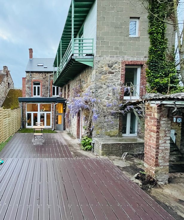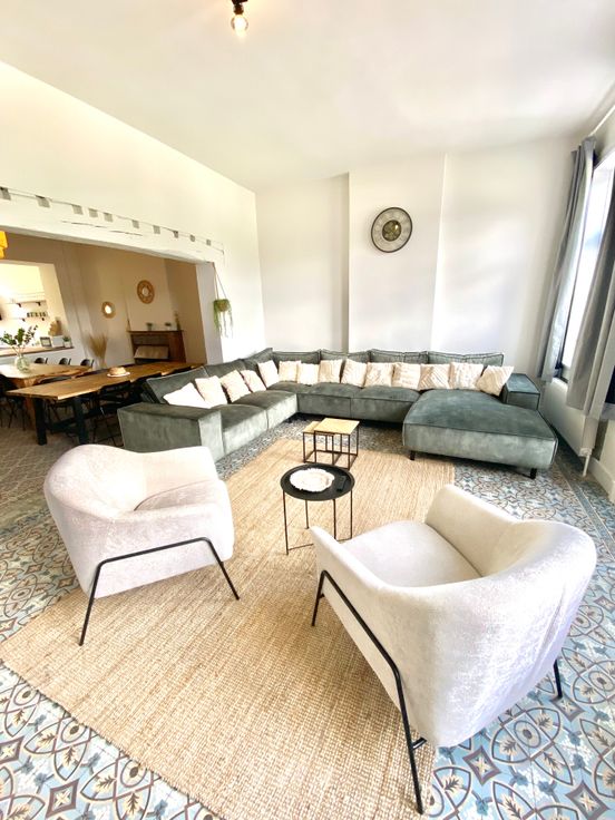 Vaste maison de charme, située en bord de Meuse, entièrement rénovée avec des matériaux de qualité. Elle dispose de 8 chambres spacieuses, de 4 salles de bains modernes, et d'une cuisine équipée. Les grandes fenêtres offrent une vue imprenable sur la Meuse. À l’extérieur, un jardin bien entretenu et une terrasse permettent de profiter des beaux jours. Le mélange de l’ancien et du moderne confère une atmosphère chaleureuse et élégante à cette demeure exceptionnelle. Aspect technique: carrelage d'époque - conformité électrique - chaudière mazout +-10 ans ( Buderus ) 20 panneaux solaires - toiture plate récente - toit isolé - l'arrière est isolé par l'intérieur - double vitrage. PEB " C ". Vendu avec 15 panneaux solaires avec conformité.