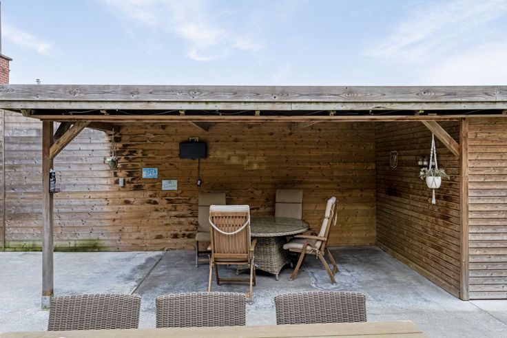 Absoluut instapklare en ruime woning met veel parkeermogelijkheden. Het perceel is zowel voor- als achteraan bereikbaar met de wagen. Achteraan is een carport en geïsoleerde werkruimte aanwezig. In het midden staat een gezellige overdekte zithoek met aansluitende tuinberging.