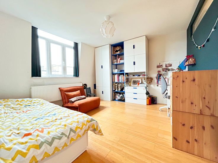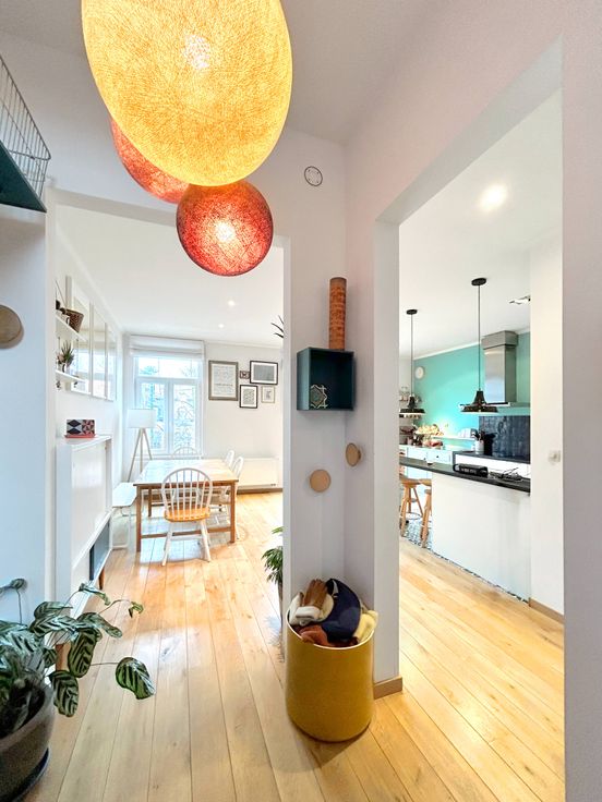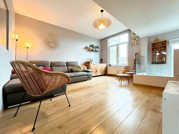 Prachtig appartement van +/- 130 m2 met dubbele beglazing, 3 slaapkamers + 1 terras, gelegen op de 2e, 3e en 4e verdieping van een goed onderhouden huis uit 1930 in een kleine mede-eigendom met lage lasten.