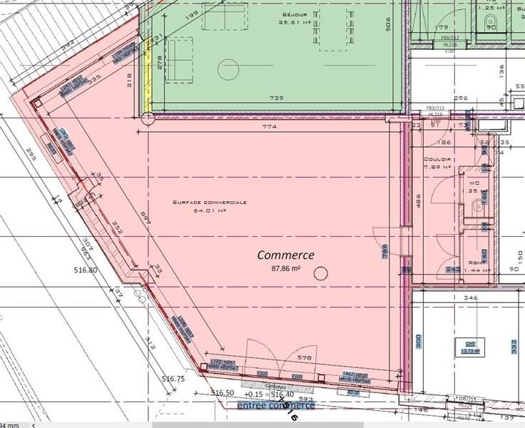 Sorry er is geen nederlandse vertaling beschikbaar. Située au rez-de-chaussée de la résidence "Le Ravel", espace commercial ou bureau de plus de 64 m² avec espace pour rangement - toilettes de presque 8 m².