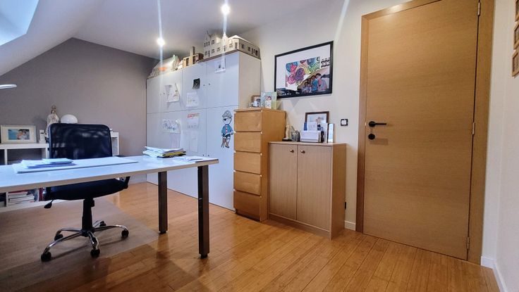 2eme étage: 2 grandes chambres (15,5 et 14 m²), salle de douche avec meuble lavabo et WC, un débarras équipé de placards sur mesure. Un grenier de rangement est accessible via un escalier escamotable.