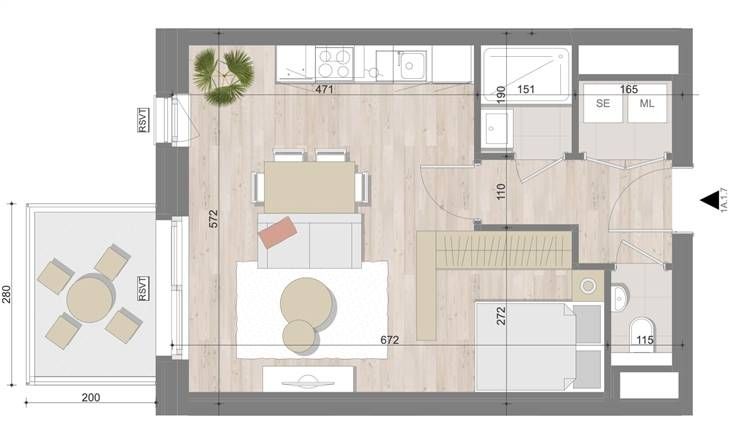 L'appartement , lui , e compose d'un hall d'entée avec WC - Espace buanderie/chaufferie - Large living avec espace pour y installer un lit en toute intimité.