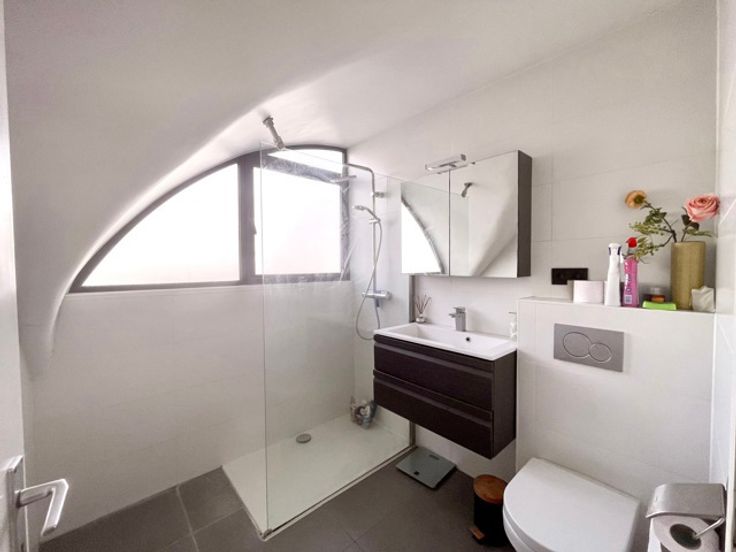 Deze duplex biedt u 2 slaapkamers, een badkamer met douche, een gezellige woonkamer, een keuken met praktische berging, een terras en een privé staanplaats voor de wagen en de fietsen in de garage.