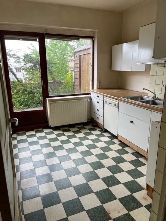 Au 1er étage, bel appartement de 97 m2 + terrasse de 30 m2 - possibilité 2 chambres à coucher - Petite copropriété - Très bonne localisation, commerces, transports en communs et gare à proximité - Travaux à prévoir - PEB G - Beaucoup de potentiel.