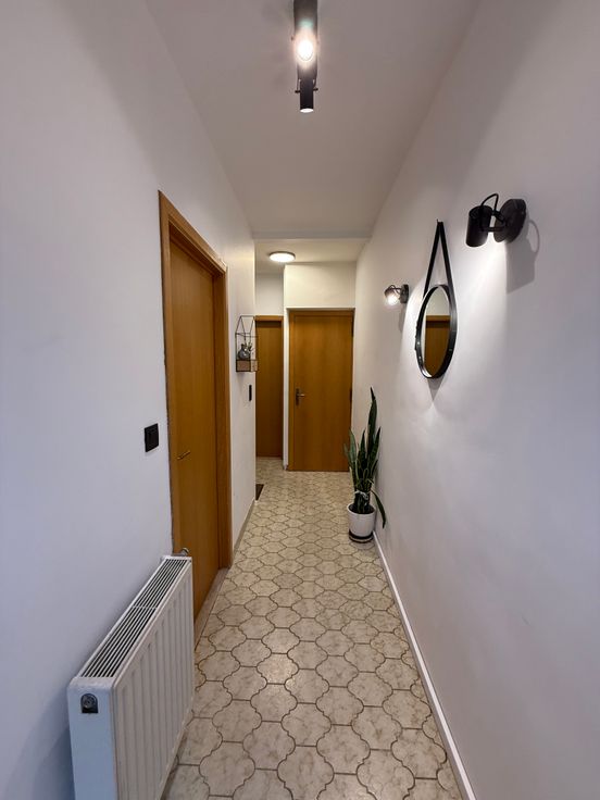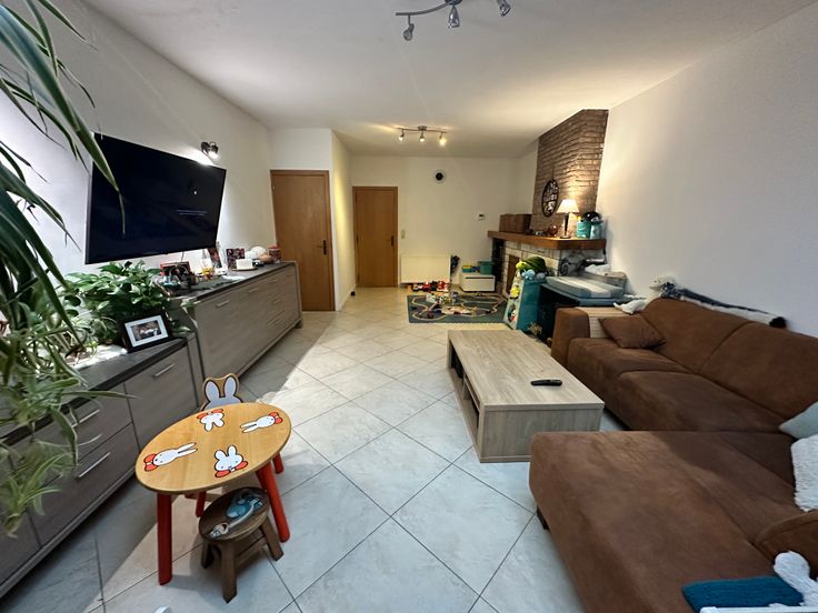 Goede starterswoning voor gezinnen met of zonder kinderen dat veel mogelijkheden biedt. Drie hele ruime slaapkamers met mogelijkheid tot een 4e slaapkamer. Garage en staanplaats voor de deur. Mogelijkheid tot tuin van 24m2. Berging onder de trap. Twee toiletten en één badkamer aanwezig. Koepel en berging achteraan het huis. Servitudeweg afgesloten met een poort zodat je met je fiets en andere spullen tot bij de berging achteraan het huis kan komen.