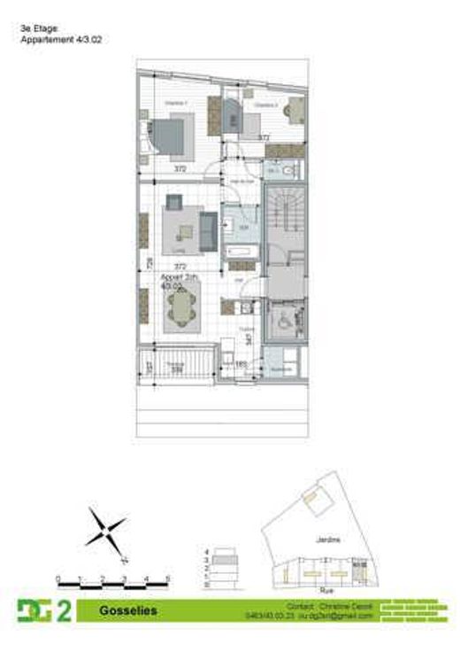 BAT 4 3e verdieping 4/3.2, 2 slaapkamers. Het project "Faubourg de Bruxelles" biedt u dit prachtige NIEUWE APPARTEMENT (2 slk / 1 badk) van 88 m² met een terras van 5 m² op het noordoosten. Gelegen op de 3e verdieping van BAT 4, bestaat het uit een inkomhal met vestiaireruimte, een lichte woonkamer van 28 m² die uitkomt op het terras, en een volledig uitgeruste open keuken met een technische ruimte/wasruimte. Een nachthal, een gastentoilet, twee slaapkamers van respectievelijk +/- 17 m² en +/- 12 m², en een badkamer (wastafel, bad). Een kelder, een ondergrondse parkeerplaats en ruime gemeenschappelijke bergruimtes voor fietsen zijn inbegrepen in de prijs. Faubourg de Bruxelles omvat 39 appartementen verdeeld over 4 tot 5 verdiepingen: van 1 slaapkamer tot 3 slaapkamers, met oppervlaktes variërend van 63 m² tot 134 m². De appartementen bieden ruime leefruimtes, uitgeruste keukens en hoogwaardige afwerkingen. Ze beschikken allemaal over tuinen van 13 m² tot 178 m² en/of prachtige terrassen van 4 m² tot 18 m². Met een EPC-certificaat van klasse A (registratierechten van 12,5% voor de grond en btw van 21% voor de bouw) vertegenwoordigt dit project een veilige investering voor elke belegger die op zoek is naar een strategische locatie en BETROUWBARE HUURINKOMSTEN.
