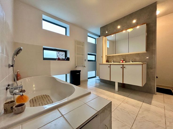 Instapklare woning in landelijke omgeving, bestaande uit een inkomhal met afzonderlijk toilet, volledig uitgeruste leefkeuken met gezellige eetplaats, berging, garage met wasplaats, praktijkruimte van +/-30 m2 (opgesplitst in 2 kamers) met afzonderlijke toegang en een grote tuin met aangelegde zonneterrassen en tuinberging + overkapping. Op het verdiep is er een grote leefruimte met eet- en zithoek, polyvalente ruimte, bureauhoek, master bedroom met ensuite een ingerichte badkamer (douche, ligbad, lavabomeubel, toilet) en dressing. De 2de verdieping is uitgerust met nog 3 extra slaapkamers. Extra troeven: - Energiezuinig (Label-B) - Voorzien van zonnepanelen en zonneboiler - 2 regenwaterputten van 10.000 L - Aangelegde voortuin met private oprit voor meerdere wagens - Ideaal voor wie wonen en werken wenst te combineren - Bruikbare vloeroppervlakte van 292 m² - Instapklaar! Deze woning is te koop ZONDER makelaar via het concept van Smart Houses. Wenst U verdere inlichtingen of bezoek? Contacteer rechtstreeks de eigenaar via 0486/45.70.85.