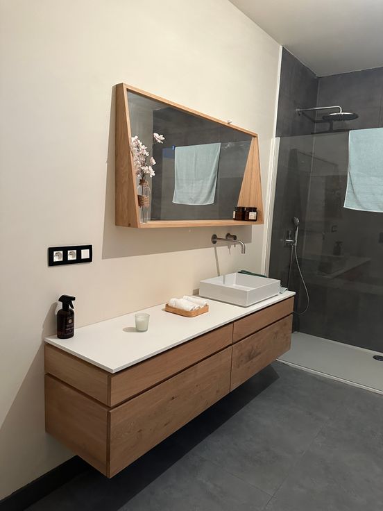 De eerste verdieping herbergt een indrukwekkende master bedroom met volop ruimte voor een moderne dressing en een thuisbureau. De badkamer op deze verdieping is een waar luxe-oord, voorzien van een ruime inloopdouche met ingebouwd Hansgrohe-kraanwerk, een duo vrijstaand bad met een exclusieve Dornbracht designkraan, een massief eiken badmeubel en een design hangtoilet.