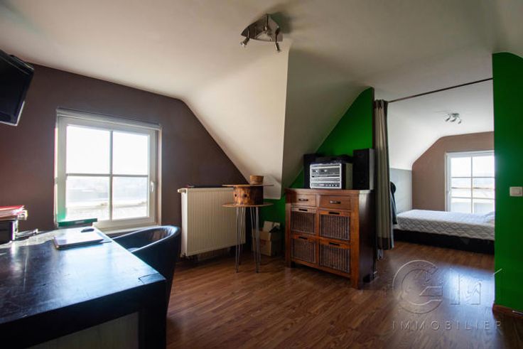 Magnifique villa de qualité de 2008, érigée sur une parcelle de 1104m², disposant de 5 chambres indépendantes, 3 salles de bain et d'un superbe espace commercial à l'avant (nombreuses possibilités : secteur libéral, médical, bien-être, ...), comprenant :