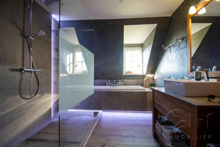 * Au 1er étage : Hall de nuit desservant 4 chambres supplémentaires dont une avec salle de bain privative (baignoire et meuble vasque), superbe salle de bain supplémentaire (baignoire, douche et meuble vasque), WC séparé et espace buanderie.