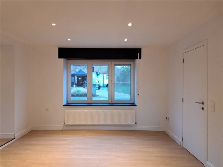 Rustig gelegen, gerenoveerde open bebouwing met 4 slaapkamers en aangenaam tuin-gedeelte. Via de inkomhal treft men rechts de leefruimte aan met aansluitend het keuken-gedeelte. De keuken is volledig geïnstalleerd met volgende toestellen: koelkast, oven, microgolfoven, afwasmachine en een inductie-kookplaat met dampkap. Via de keuken en via de hal achteraan kan men het terras en tuin-gedeelte bereiken. Verder treft U op deze verdieping nog een apart toilet, de badkamer, de wasberging en een bureau/eerste slaapkamer. In de badkamer is er een inloopdouche, een ligbad en een dubbele lavabo met meubel voorzien. Op de eerste verdieping zijn er 3 ruime slaapkamers en een toilet. - Rolluiken beneden voorzien - zolder en kelder aanwezig - tuinberging van 18m² Algemene informatie: Huurprijs: 1100 euro/maand Algemene onkosten: NVT Vrij vanaf: onmiddellijk EPC-waarde: 182 kWh/m² Huisdieren: niet toegelaten