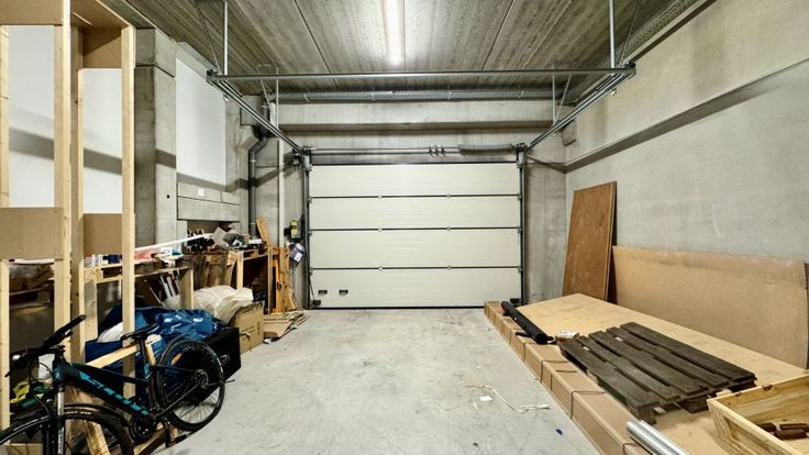 Opslagruimte: Uitgerust met een sectionaalpoort (B400 x H275 cm) voor gemakkelijke toegang en logistiek.