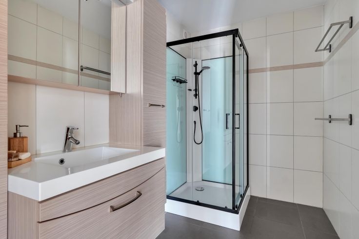 De badkamer is uitgerust met een wastafel en een praktische douchecabine. Verder is er een apart toilet en berging aanwezig.